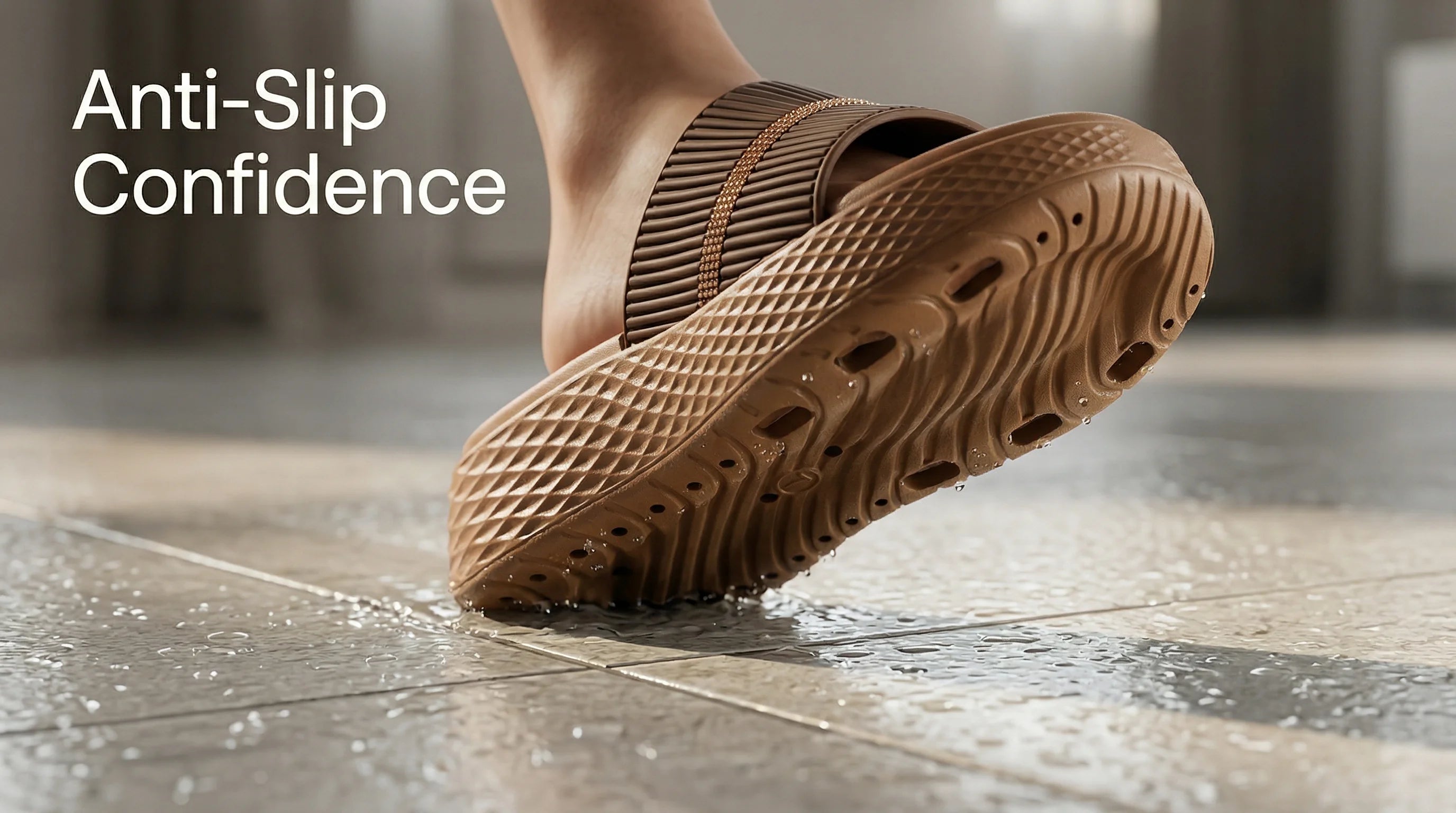 • Anti-Slip Outsole – Better grip on tiles & smooth surfaces