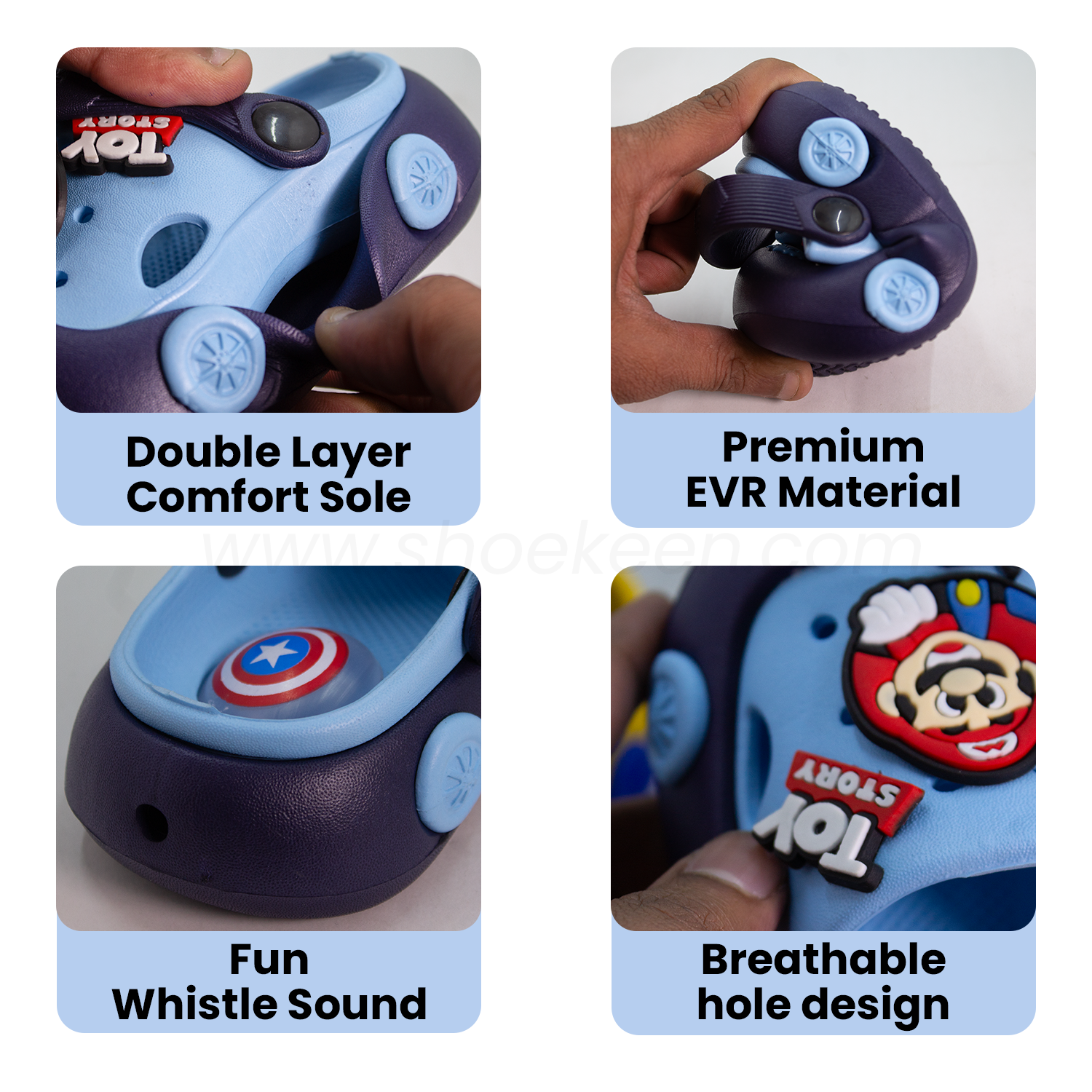Give your child the perfect mix of comfort, fun, and safety with our premium Whistle Crocs. Made from high-quality EVR material with zero waste production, these slippers are designed for daily wear and endless kid-friendly fun.